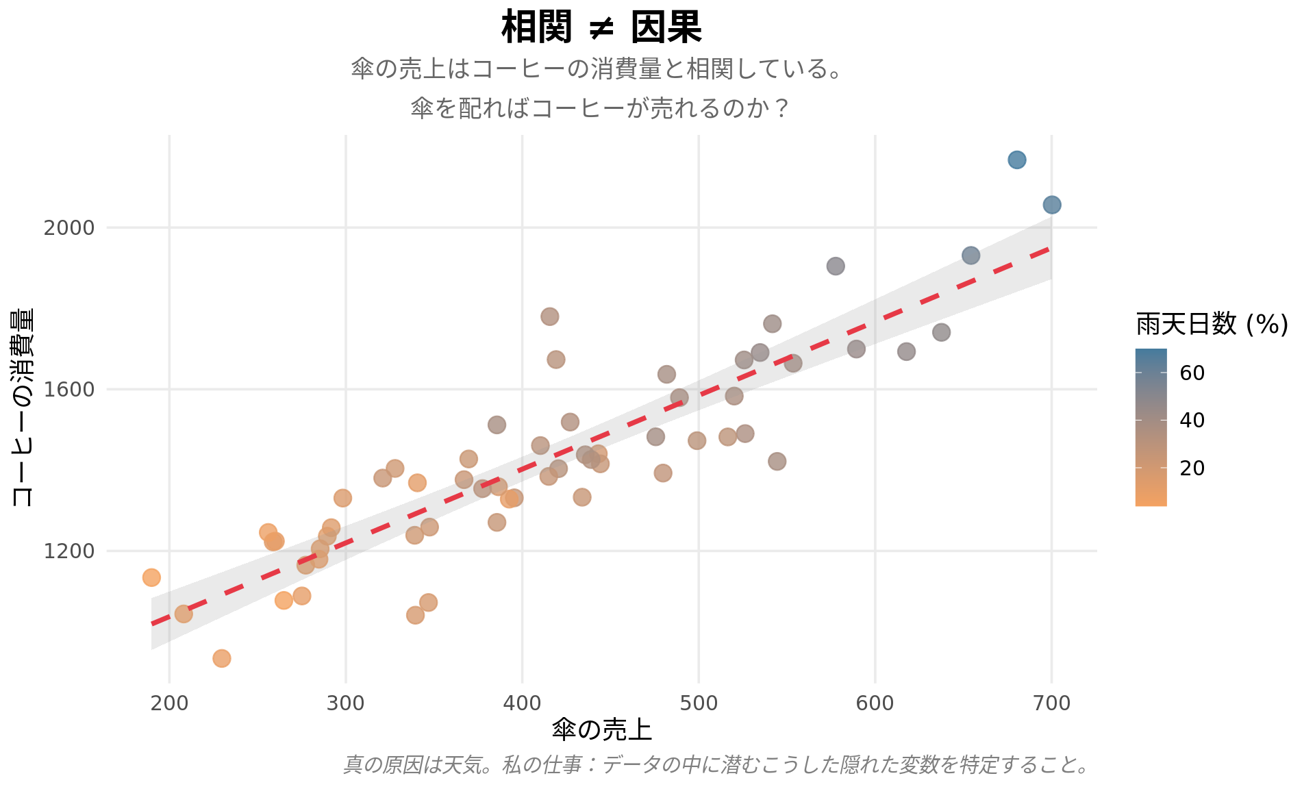 データに相関が見える。しかし、それは本当の原因か?